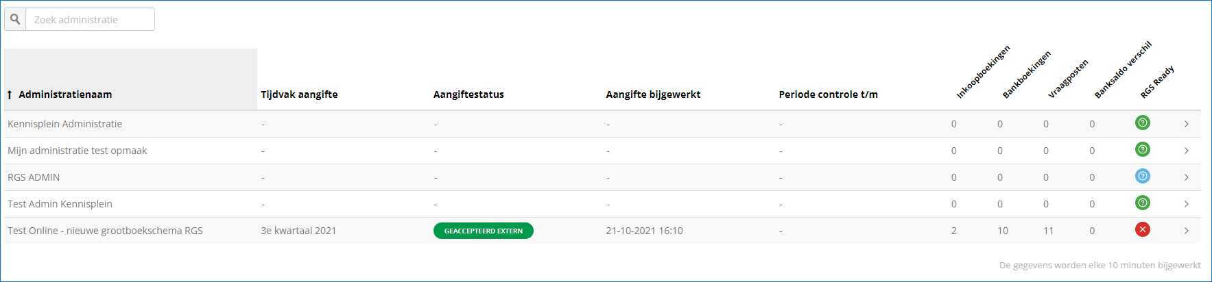 Blauwe bolletje -> status onbekend, kan geen status ophalen. Deze status geeft SnelStart bijvoorbeeld bij nieuwe administraties die nog niet zijn geopend in Web.